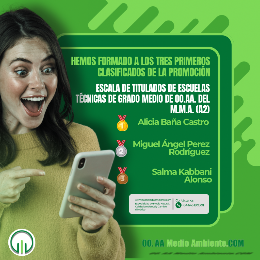 Nuestra alumna Alicia Baña Castro preparada con nosotros. www.oposicionesorganismosautonomosmedioambiente.com consigue el Nº1 de la promoción, seguida de dos compañeros más de la academia Miguel Angel Perez Rodriguez con el Nº2 y Salma Kabbani Alonso con el Nº3.